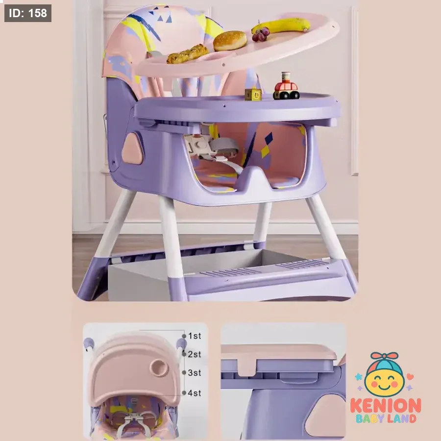 كرسي طعام الأطفال 4 في 1 القابل للطي والتعديل، الحل الأمثل الذي ينمو مع طفلك من 5 أشهر حتى 7 سنوات. يتميز كرسي الطعام بأمان فائق مع حزام خماسي، صينية مزدوجة سهلة التنظيف، وعجلات لسهولة الحركة. استثمري في راحة طفلك اليوم!