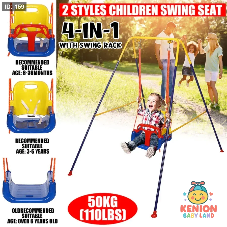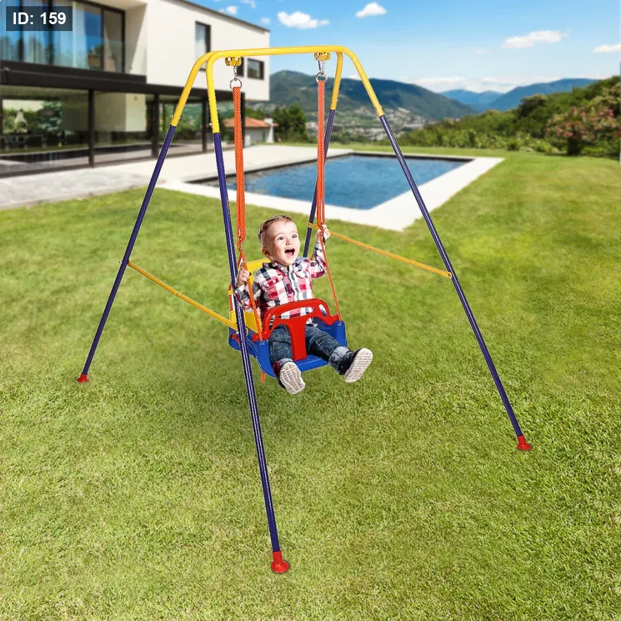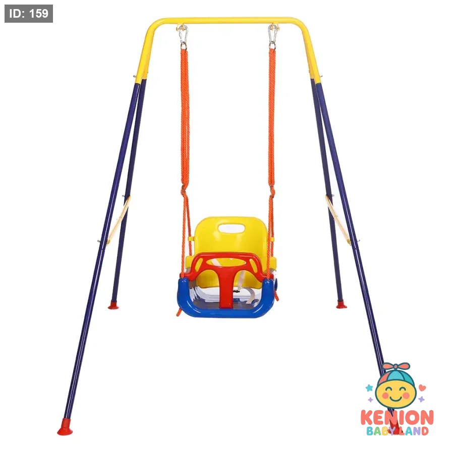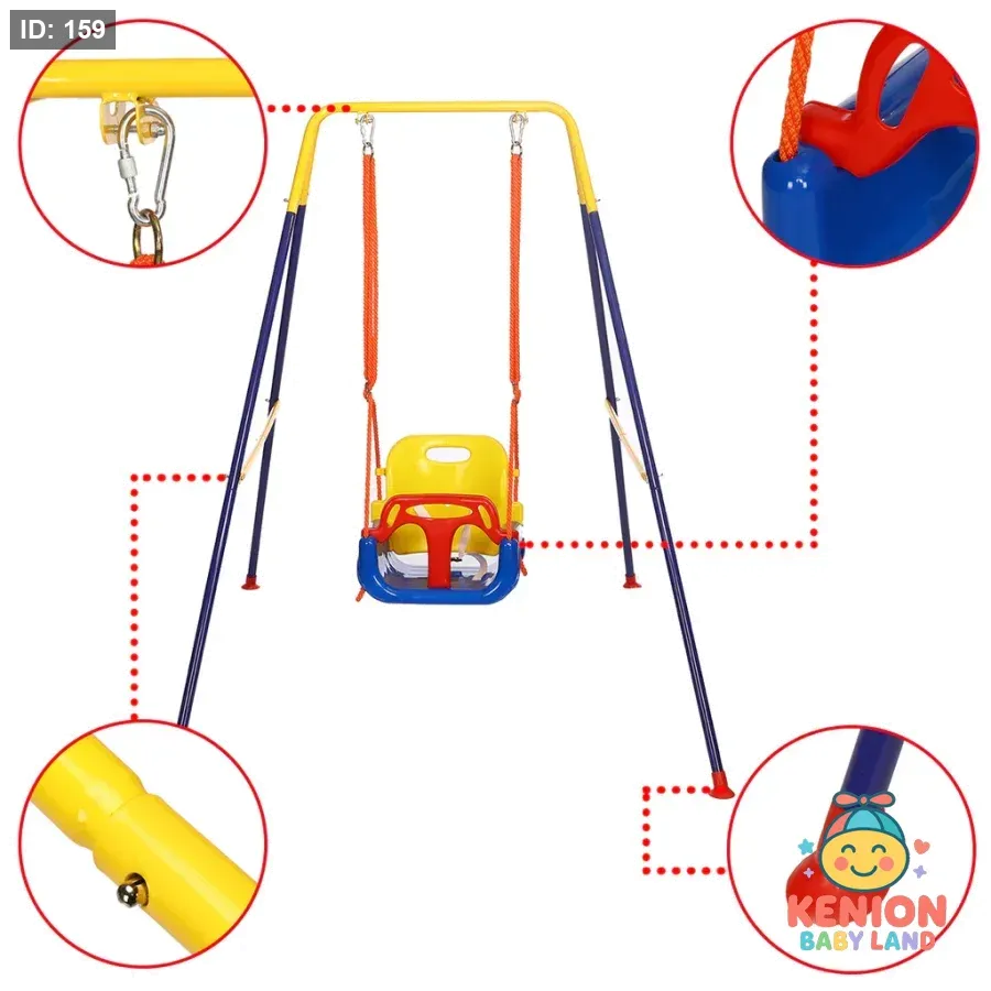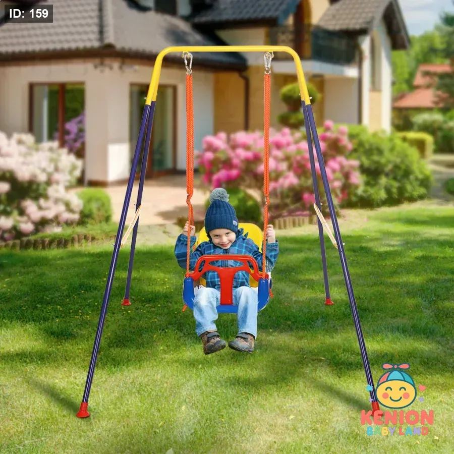 أرجوحة أطفال معدنية 3 في 1 للاستخدام الداخلي والخارجي من 6 شهور لغاية 10 سنوات، مرجوحة اطفال مزودة بحزام أمان ودرابزين وحامل قابل للطي، مرجيحة اطفال سهلة التركيب وتخزينها مريح. تصميم آمن وملون يوفر ساعات ممتعة من اللعب الآمن والنمو الصحي للأطفال.