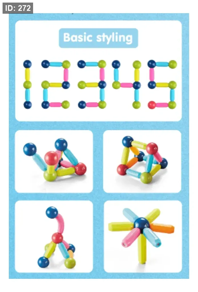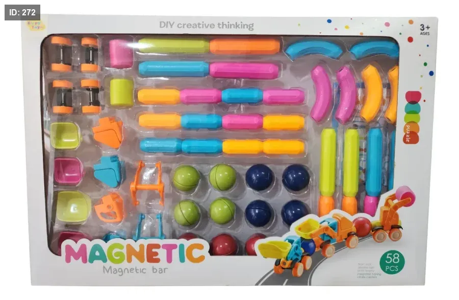 تحتوي المجموعة على ٥٨ قطعة مغناطيسية وبلاستيكية.