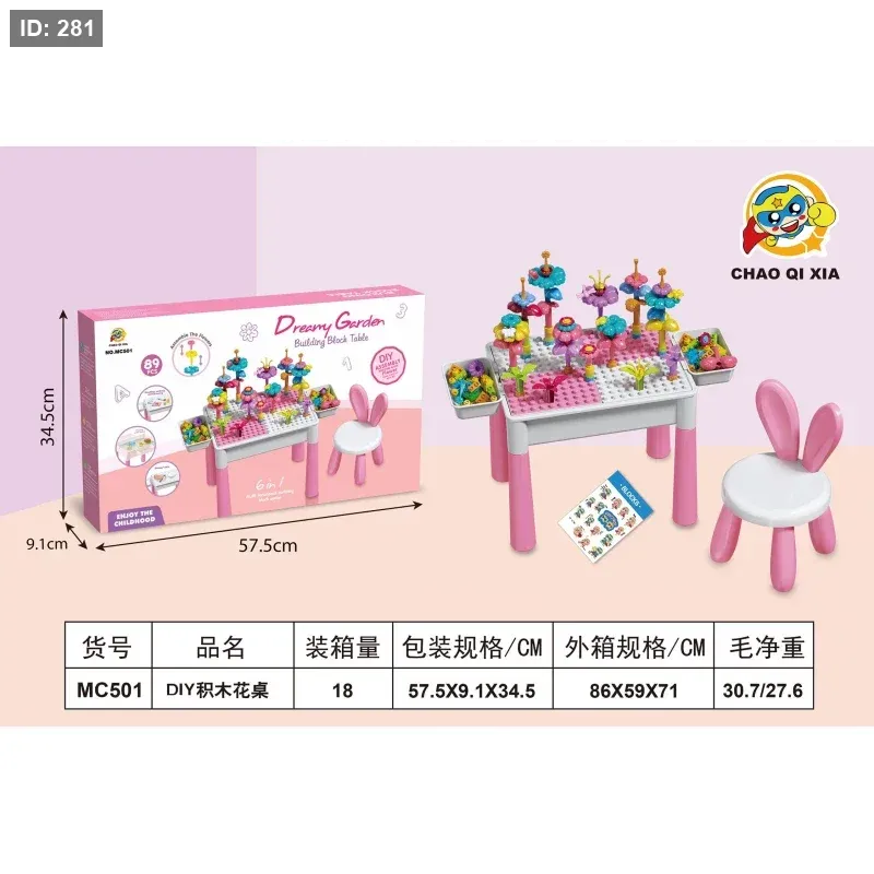 "الحديقة الحالمة" 6 في 1 (MC501) - 89 قطعة مع كراسي وقاعدة زهور/مكعبات