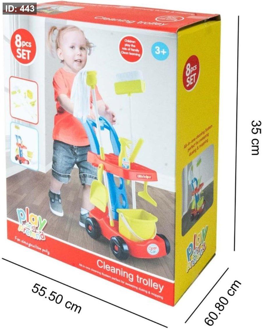 عربة تنظيف للعب التظاهري للاطفال من فيتو مكونة من 8 قطع مع دلو ومكنسة وممسحة وجميع الملحقات