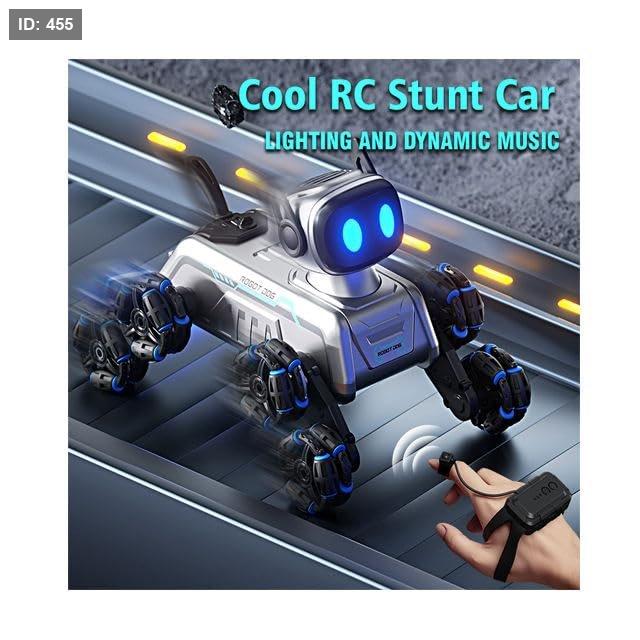 Khilona Ghar Robot Dog 8-Wheel RC Stunt Car | Gesture Control Intelligent Deformation Car | Hand Induction Remote Control Mechanical Dog Toy for Kids | 360°...