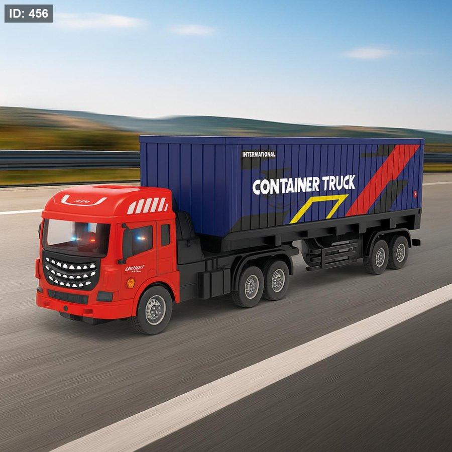 مقطورة شاحنة نصف مقطورة بأربع قنوات للتحكم عن بعد مع أضواء من شركة كونتينر تويز - شاحنة متينة تعمل بالتحكم عن بعد للأطفال، ممتعة وواقعية، هدية مثالية للأولاد والبنات\