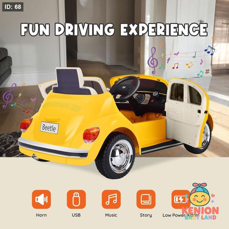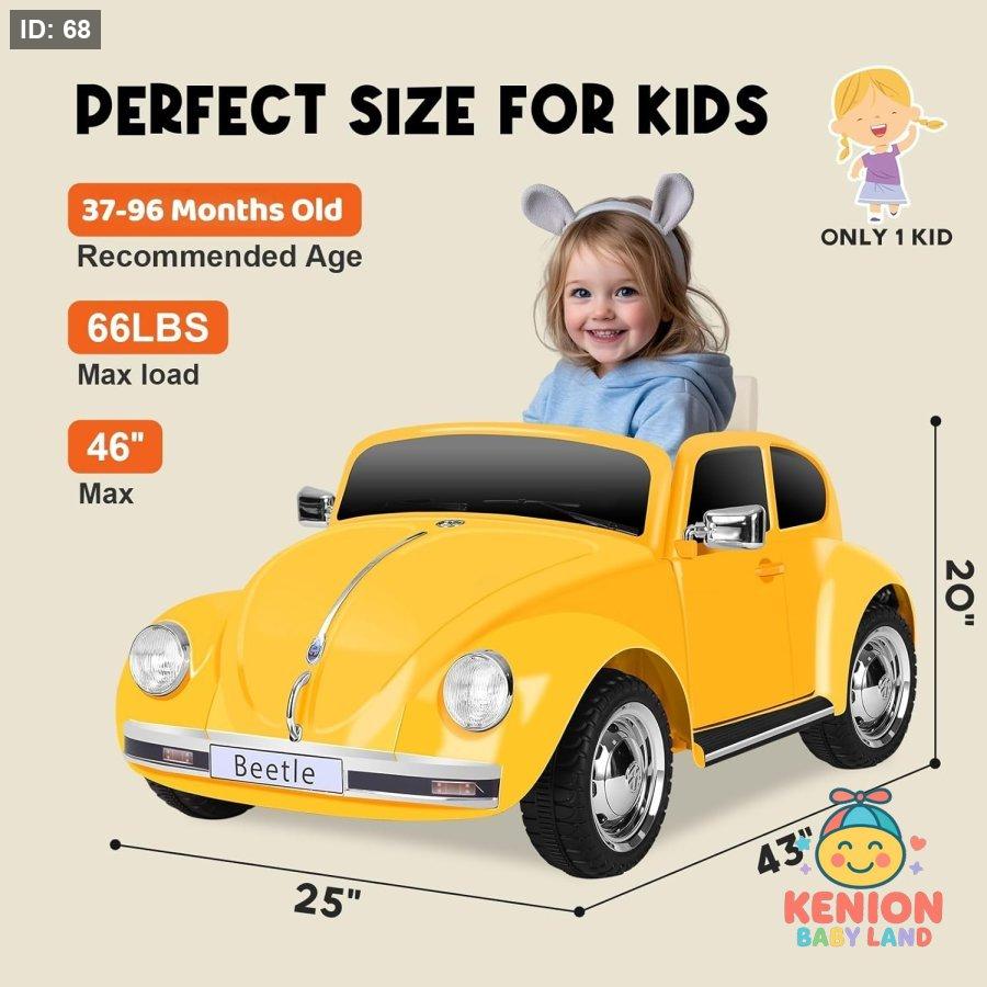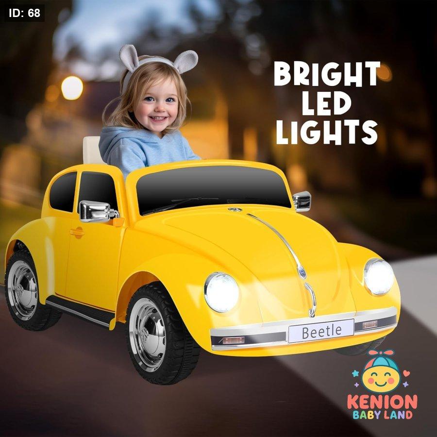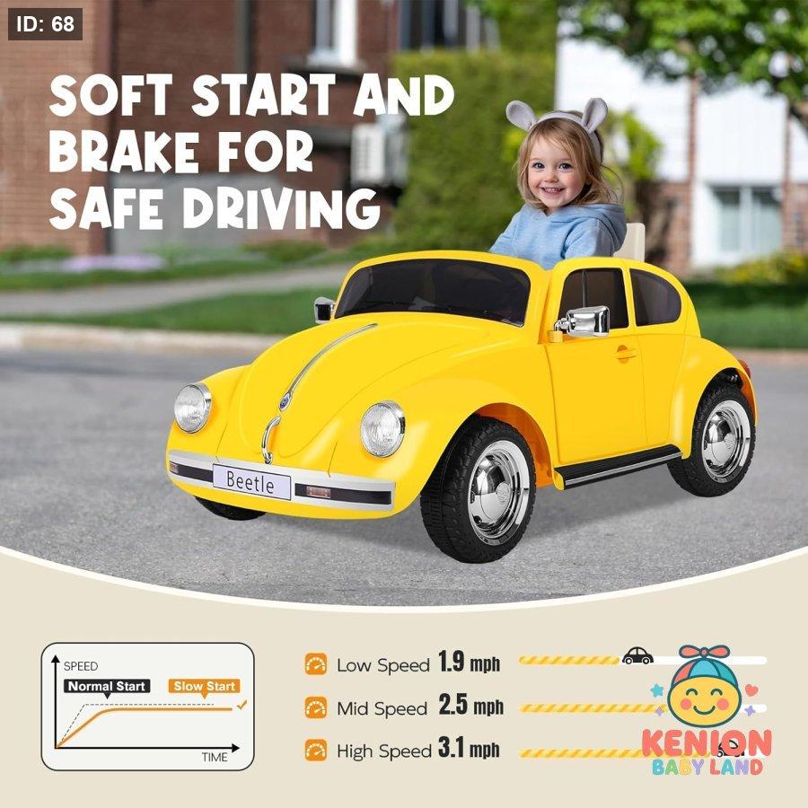 XCAR 12V Electric Car for Toddlers, Beetle Ride on Car with Remote Control, LED Light, 3 Speeds, Music, Ages 37-96 Months