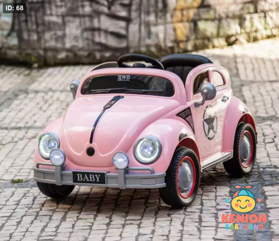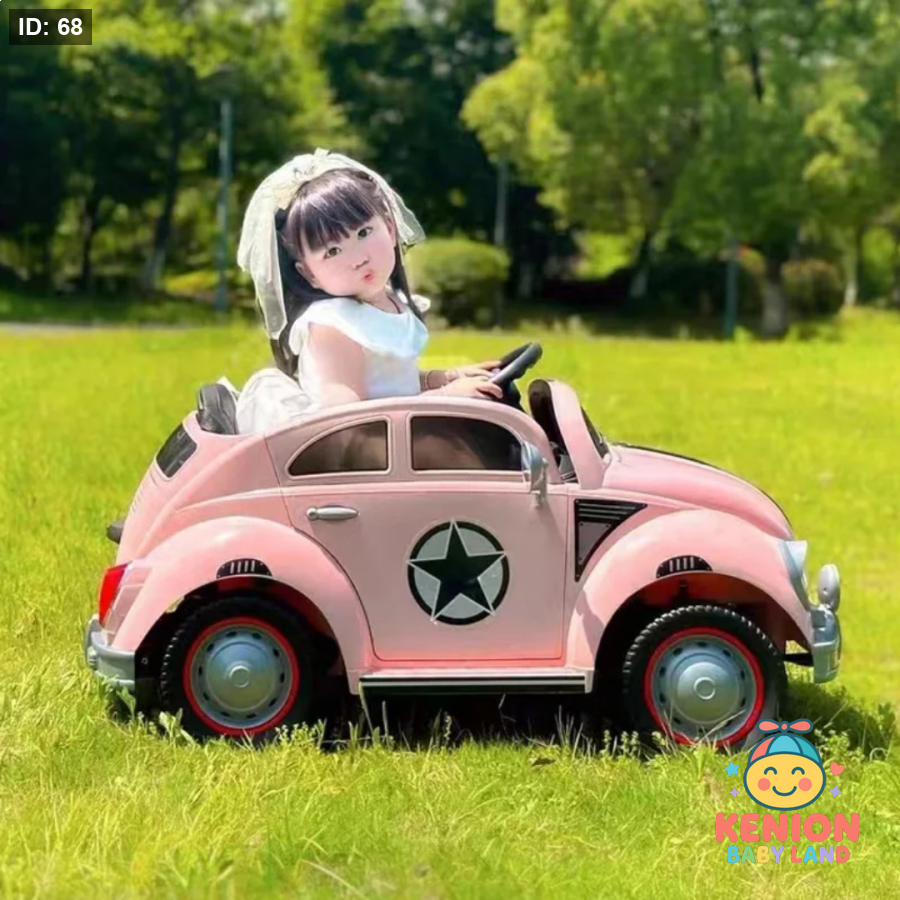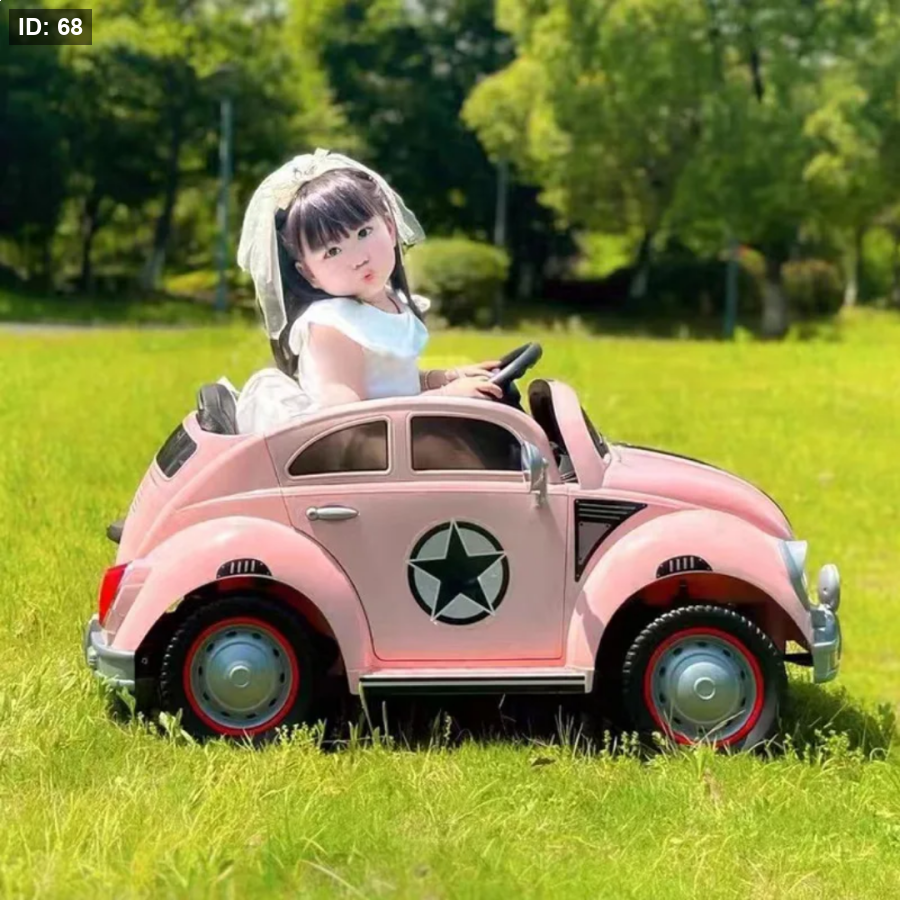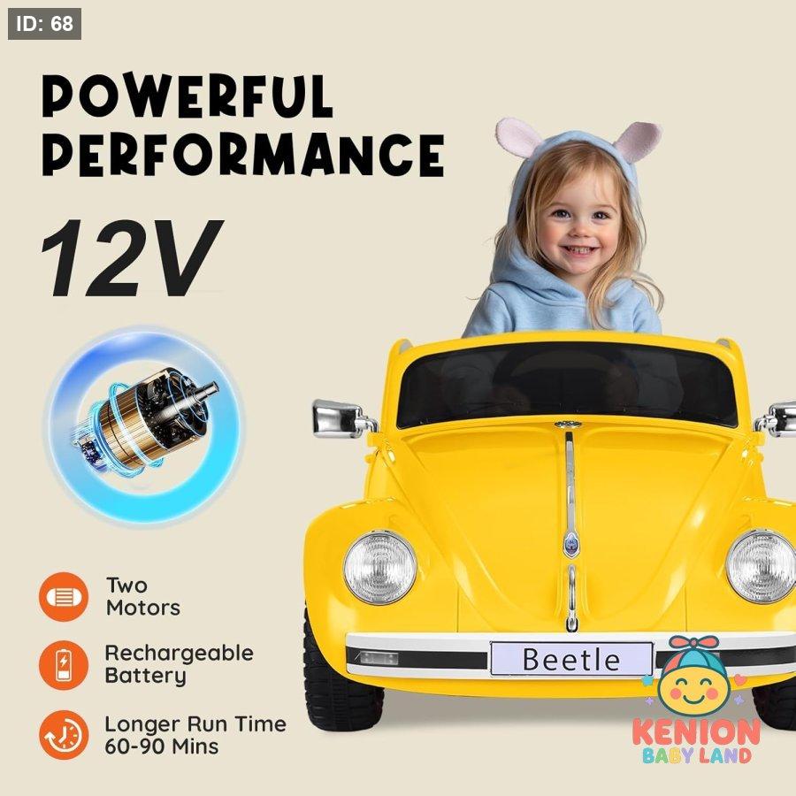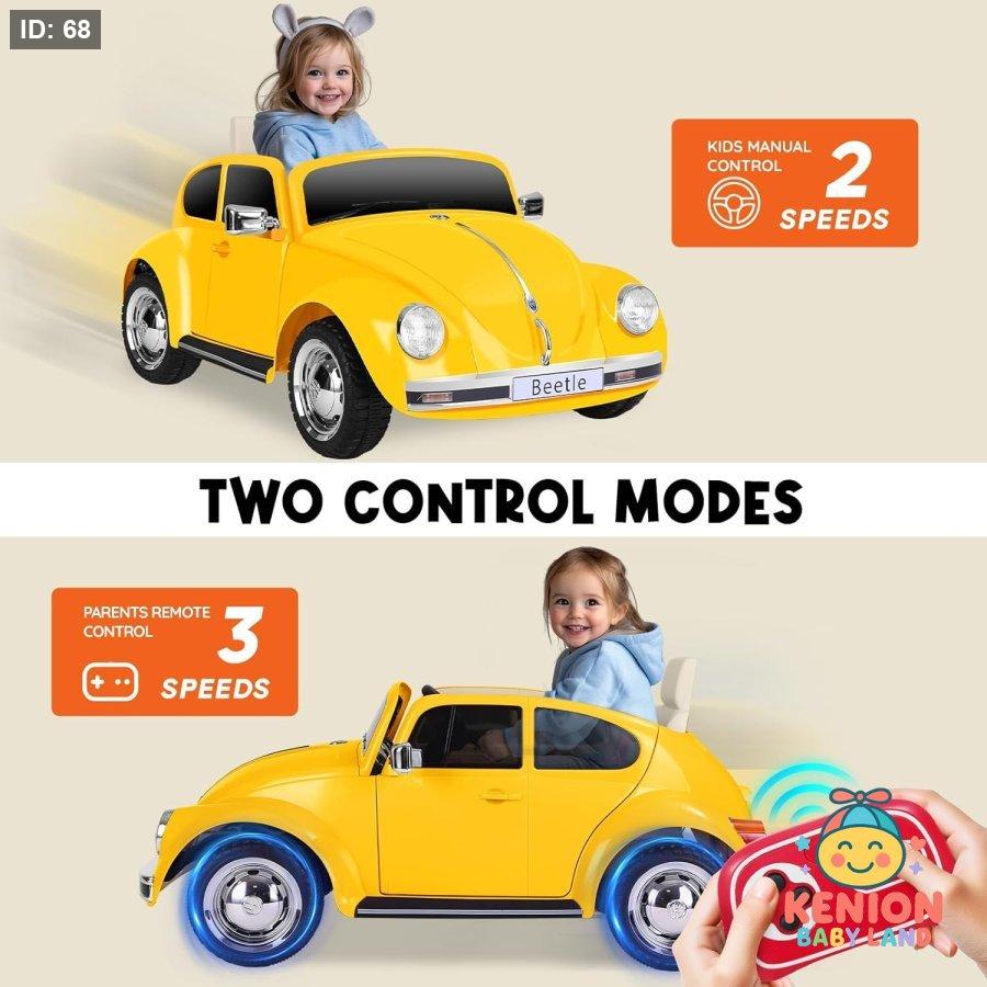 XCAR 12V Electric Car for Toddlers, Beetle Ride on Car with Remote Control, LED Light, 3 Speeds, Music, Ages 37-96 Months